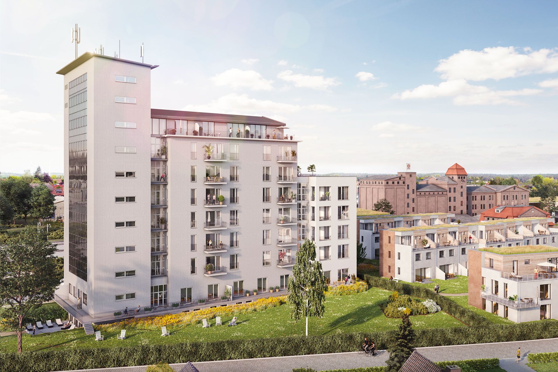 Revitalisierung ehemaliger Kornspeicher (Baujahr 1961) mit 5-geschossigem Neubau / Anbau